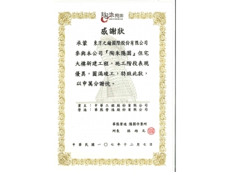 丹特獲頒華雄營造感謝狀